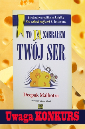 Dzięki uprzejmości Wydawnictwa drugi egzemplarz To ja zabrałem twój ser mam dla kogoś z Was. Napiszcie w komentarzu pod tym postem dlaczego chcielibyście przeczytać książkę To ja zabrałem twój ser.  Podajcie swoje imię lub nick. Na Wasze komentarze czekam końca przyszłej niedzieli, czyli do 9 czerwca włącznie. Wtedy wybiorę zwycięski komentarz i prześlę zwycięzcy książkę.